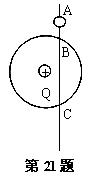 19. 如图所示,光滑绝缘细杆竖直放置,它与正点荷Q为圆心的某圆交与B、C两点,质量为m、带电量为-q的有孔小球从杆上A点无初速度下滑,已知q<<Q,AB=h,小球滑到B点时的速度大小为v=