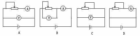 8、在测量电池的电动势和内阻的实验中,电源的电动势约为6V,内阻约为0.5Ω,电流表的内阻为0.5Ω,电压表的内阻为6kΩ。为了减小实验的误差,应当采用的电路是如图所示中的:( )