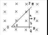 2.如图所示,在跟匀强磁场垂直的平面内放置一个折成锐角的裸导线MON,∠MON=α。在它上面搁置另一根与ON垂直的导线PQ,PQ紧贴MO、ON并以平行于ON的速度V,从顶角O开始向右匀速滑动,设裸导线单位长度的电阻为R0,磁感强度为B,求回路中的感应电流。