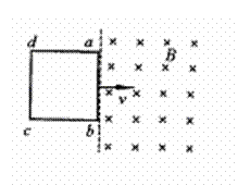 如图 所示,在绝缘光滑水平面上,有一个边长为L的单匝正方形线框abcd,在外力的作用下以恒定的速率v向右运动进入磁感应强度为B的有界匀强磁场区域。线框被全部拉入磁场的过程中线框平面保持与磁场方向垂直,线框的ab边始终平行于磁场的边界。已知线框的四个边的电阻值相等,均为R。求: