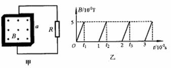 的外电阻连成闭合回路,如图15甲所示。线圈所在区域存在着分布均匀但强弱随时间变化的磁场,磁场方向垂直线圈平面,其磁感应强度B的大不随时间作周期性变化的周期T=1.0×10-2s,如图15乙所示,图象中
