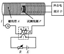 ★8.如图所示是测量通电螺线管A内部磁感应强度B及其与电流I关系的实验装置。将截面积为S、匝数为N的小试测线圈P置于螺线管A中间,试测线圈平面与螺线管的轴线垂直,可认为穿过该试测线圈的磁场均匀。将试测线圈引线的两端与冲击电流计D相连。拨动双刀双掷换向开关K,改变通入螺线管的电流方向,而不改变电流大小,在P中产生的感应电流引起D的指针偏转。