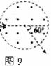 如图9所示为圆柱形区域的横截面,在没有磁场的情况下,带电粒子(不计重力)以某一初速度沿截面直径方向射入,穿过此区域的时间为t,在该区域加沿轴线方向的匀磁强场,磁感应强度为B,带电粒子仍以同一初速度沿截面直径射入,粒子飞出此区域时,速度方向偏转60°角,根据上述条件可求下列物理量中的哪几个?