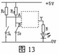 15.如图13是一个应用某逻辑电路制作的简单车门报警电路图。图中的两个按钮S1、S2分别装在汽车的两道门上。只要其中任何一个开关处于开路状态,发光二极管(报警灯)就发光。则虚线框内的逻辑电路是_▲ 门电路。