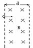 9. 如图所示,比荷为e/m的电子从左侧垂直于界面、垂直于磁场射入宽度为d、磁感应强度为B的匀强磁场区域,要从右侧面穿出这个磁场区域,电子的速度至少应为