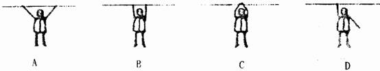 10. 图中的四幅图展示了某同学做引体向上运动前的四种抓杠姿势,其中手臂受力最小的是