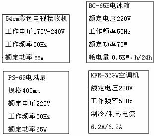 16.下面列出了某同学家里的电视机、电风扇、空调机和电冰箱铭牌上的主要项目: