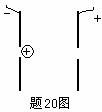 20. 如图所示,带电量为q,质量为m的带电粒子,在电压为U的电场中,初速度为零,则射出电场时的速度大小为_____________。