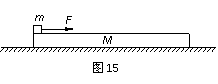 8.(8分)如图15所示,光滑水平面上有一块木板,质量M = 1.0 kg,长度L = 1.0 m.在木板的最左端有一个小滑块(可视为质点),质量m = 1.0 kg.小滑块与木板之间的动摩擦因数μ = 0.30.开始时它们都处于静止状态.某时刻起对小滑块施加一个F = 8.0 N水平向右的恒力,此后小滑块将相对木板滑动.