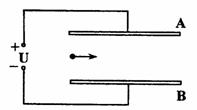 18.(10分)如图所示,相距为0.2m的平行金属板A、B上加电压U=40V,在两板正中沿水平方向射入一带负电小球,经0.2s小球到达B板,若要小球始终沿水平方向运动而不发生偏转,A、B两板间的距离应调节为多少?(g取10m/s2)