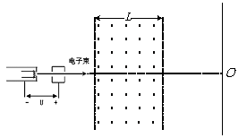 19.(10分)如图所示,在电视机显像管中的某区域加有水平匀强磁场,磁场宽度为L。质量为m、电荷量为e的电子经电压为U的电场加速后射入该磁场。若不加磁场时,电子打在荧光屏中点O。加水平方向的磁场时,电子打到屏上时速度方向与竖直方向成30°角,求