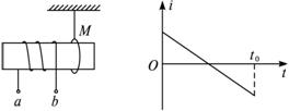 6.线圈ab中的电流如图所示,设电流从a到b为正方向,那么在0~t0这段时间内,用丝线悬挂的铝环M中产生感应电流,从左向右看,它的方向是( )
