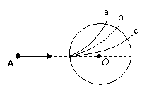 如图所示,圆形区域内有垂直纸面的匀强磁场,三个质量和电荷量都相同的带电粒子a、b、c,以不同的速率对准圆心O沿着AO方向射入磁场,其运动轨迹如图。若带电粒子只受磁场力的作用,则下列说法正确的是( )