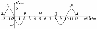 10.如图所示,两列简谐横波分别沿x轴正方向和负方向传播,两波源分别位于x= -2×10-1 m和x=12×10-1 m处,两列波的波速均为v=0.4 m/s,两波源的振幅均为A=2 cm.图示为t=0时刻两列波的图象(传播方向如图),此刻平衡位置处于x=0.2 m和0.8 m的P、Q两质点刚开始振动.质点M的平衡位置处于x=0.5 m处,关于各质点运动情况的判断正确的是……… ( )