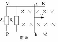14、(12分)如图10所示,MN、PQ是两条水平放置的平行光滑导轨,其阻值可以忽略不计,轨道间距L=0.6m。匀强磁场垂直导轨平面向下,磁感应强度B=1.0×10