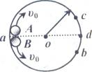 2如图所示,竖直圆环内侧凹槽光滑,a0d为其水平直径,两个相同的小球A和B(均可视为质点),从a点同时以相同速率v。开始向上和向下沿圆环凹槽运动,且运动中始终未脱离圆环,则A、B两球第一次: