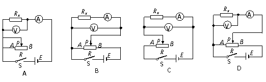 (2)为了减少实验误差,并在实验中获得较大的电压调节范围,应从A、B、C、D四个电路中选择___D____电路来测量金属丝电阻(图中Rx代表待测的螺线管)。