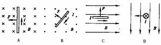 2. 在如图所示的匀强磁场中,已经标出了电流I和磁场B以及磁场对电流作用力F三者的方向,其中错误的是( )