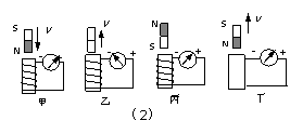 (2)已知一灵敏电流计,当电流从正接线柱流入时,指针向正接线柱一侧偏转,现把它与线圈串联接成如图(2)所示电路,当条形磁铁按如图(2)所示情况运动时,以下判断正确的是__________