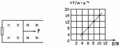 14.(14分)水平面上两根足够长的金属导轨平行固定放置,间距为L,一端通过导线与阻值为R的电阻连接;导轨上放一质量为m的金属杆(如左下图),金属杆与导轨的电阻忽略不计,均匀磁场竖直向下.用与导轨平行的恒定拉力F作用在金属杆上,杆最终将做匀速运动.当改变拉力的大小时,相对应的匀速运动速度v也会变化,v和F的关系如右下图.(取重力加速度g=10 m/s2)