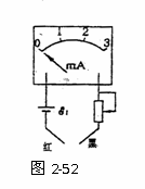 5.如图2-52所示是把量程为3mA的电流表改装成欧姆表的示意图,其中E1=1.5V。结束后若将原电流表3mA刻度处定为零阻值位置,则2mA刻度处应标多少