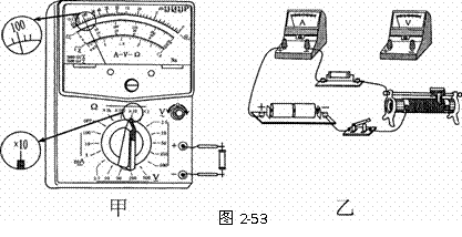 (1)他先用多用电表进行测量,按照正确的步骤操作后,测量的结果如图2-53(甲)所示.请你读出其阻值大小为_____________.为了使多用电表测量的结果更准确,该同学接着应该进行哪些操作?答:_________________.
