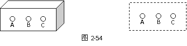 把一只电阻和一只晶体二极管串联,装在盒子里,盒子外面只露出三个接线柱A、B、C。如图2-54所示,今用多用电表的欧姆档进行测量,测量的电阻值如下表所示,试在虚线框画出盒内元件的符号和电路。