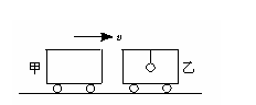 12.如图所示,甲、乙两辆完全一样的小车,质量都为M,乙车内用绳吊一质量为0.5 M的小球,当乙车静止时,甲车以速度v与乙车相碰,碰后连为一体,则碰后两车的共同速度为_______.当小球摆到最高点时,速度为_______.