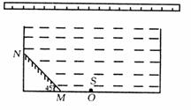 )dm,OM = 1dm,在容器中央正上方1 dm 处水平放置一足够长的刻度尺,求光源S发出的光线经平面镜反射后,照射到刻度尺的长度。(不考虑容器侧壁和液面的反射)
