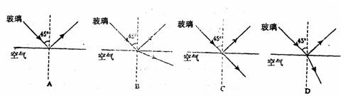 一束光线从折射率为1.5的玻璃内射向空气,在界面上的入射角为45°,下面四个光路图