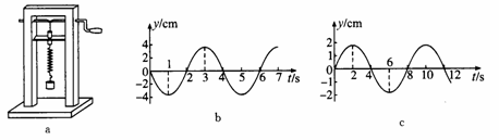 15.一砝码和一轻弹簧构成弹簧振子,如图a所示的装置可用于研究该弹簧振子的受迫振动.匀速转动把手时,曲杆给弹簧振子以驱动力,使振子做受迫振动,把手匀速转动的周期就是驱动力的周期,改变把手匀速转动的速度就可以改变驱动力的周期.若保持把手不动,给砝码一向下的初速度,砝码便做简谐运动,振动图线如图b所示.当把手以某一速度匀速转动,受迫振动达到稳定时,砝码的振动图线如图c所示.若用T0表示弹簧振子的固有周期,T表示驱动力的周期,y表示受迫振动达到稳定后砝码振动的振幅.则( )