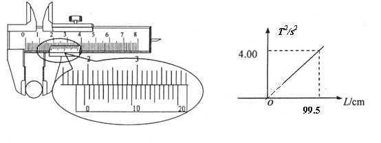 16.在“用单摆测定重力加速度”的实验中:用主尺最小分度为1mm,游标上有20个分度的卡尺测量金属球的直径,结果如图所示,可以读出此金属球的直径为 mm;在利用单摆测重力加速度的实验中,测出多组摆长L与周期T的数据,根据实验数据,作出了T2-L的关系图象如图所示,理论上T2-L图象是一条过坐标原点的直线,根据图中数据,可算出重力加速度其值为 m/s2(取π2=9.86,结果保留三位有效数字)