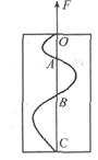 (10分)如图所示,一块涂有炭黑的玻璃板,质量为2kg,在拉力F的作用下,由静止开始竖直向上做匀变速运动.一个装有水平振针的振动频率为5Hz的固定电动音叉在玻璃板上画出了图示曲线,量得OA=1cm,OB=4cm,OC=9cm.求拉力的F大小(g=10m/s2)