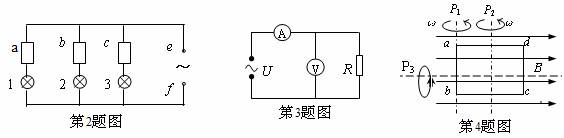 2.如图所示,在e、f间接上交流电源,保持电压最大值不变,使其频率增大,发现各灯的亮度变化情况是:灯1变暗,灯2变亮,灯3不变。则黑箱a、b、c中所接元件可能是( )