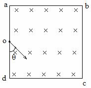 15.(12分)如图所示的匀强磁场区域abcd为一边长为L的正方形,磁感应强度大小为B,一电荷量为+q,质量为m、重力不计的带电粒子,从ad边的中点o与ad边成30°的角且垂直于磁场方向射入。求:(1)若要带电粒子在磁场中的飞行时间最长,带电粒子的速度必须满足什么条件?