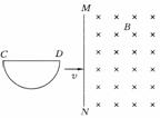 10、如图所示,一导线弯成半径为a的半圆形闭合回路。虚线MN右侧有磁感应强度为B的匀强磁场。方向垂直于回路所在的平面。回路以速度v向右匀速进入磁场,直径CD始络与MN垂直。从D点到达边界开始到C点进入磁场为止,下列结论正确的是 :