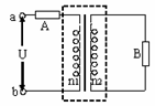 如图所示,理想变压器的原、副线圈匝数之比为n1∶n2=4∶1,原线圈回路中的电阻A与副线圈回路中的负载电阻B的阻值相等。a、b端加一交流电压后, 两电阻两端的电压之比UA∶UB=_________;两电阻消耗的电功率之比PA∶PB=________。