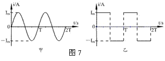 如图7所示,正弦波和方波交变电流的最大值相等,周期也相等,现把它们流入完全相同的电阻,则在相同的时间(远大于周期)内,两电阻发热之比
