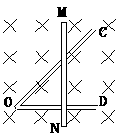 如图所示,金属三角形导轨COD上放有一根金属棒MN,拉动MN使它以速度v向右匀速平动,如果导体和金属棒都是粗细相同的均匀导体,电阻率都为ρ,那么MN运动过程中,闭合电路的(
