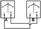 如图所示,两个完全相同的灵敏电流表A和B,由两根短线连接在一起,若将A的指针向左拨动时,B的指针将( )