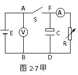 2.如图2-7甲所示是一种测量电容的实验电路图,实验是通过对高阻值电阻放电的方法,测出电容器充电至电压U时所带电量Q,从而再求出电容器的电容C。某同学在一次实验时的情况如下:接通开关S,调节电阻箱R的阻值,使小量程电流表的指针偏转接近满刻度,记下此时电流表的示数是I0=490μA,电压表的示数U0=6.0V,I0 、U0分别是电容器放电时的初始电压和电流。断开开关S,同时开始计时,每隔5S(10S)测读一次电流I的值,将测得数据填入表格,并标在图乙坐标纸上(时间t为横坐标、电流i为纵坐标),结果如图中小黑点“.”所示。