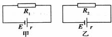 A.电源内部产生电热较多的是乙电路 B.R1上产生的电热比R2上产生的电热多