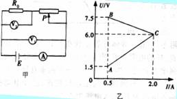 7、如图甲所示,在滑动变阻器的滑动触头P从一端滑到另一端的过程中,两块理想电压表的示数随电流表示数的变化情况如图乙所示,则滑动变阻器的最大阻值和定值电阻R0的值分别为( )