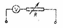 8、如图所示,一电压表和可变电阻器R串联后接在一个电压恒定的电源两端,如