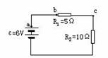 9、如图所示电路的三根导线中有一根是断的。电源、电阻器R1、R2及另外两根导线都是好的。为了查出断导线,某学生想先用万用表的红表笔连接在电源的正极a,再将黑表笔分别连接在电阻器R1的b端和R2的c端,并观察万用表指针的示数。在下列选挡中,符合操作规程的是:( )