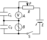 如图所示,电路中电源的电动势为E,内阻为r,A为电压表,内阻为10kΩ,B为静电计,两个电容器的电容分别为C1和C2,将电键S合上一段时间后,下列说法中正确的是( )
