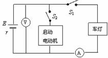 12、如图所示,汽车蓄电池与车灯、启动电动机组成的电路,蓄电池内阻为0.05Ω,电表可视为理想电表.只接通S1时,电流表示数为10A,电压表示数为12V;再接通S2,启动电动机时,电流表示数变为8A,则此时通过启动电动机的电流是( )