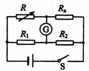 ③用伏安法测金属丝电阻存在系统误差。为了减小系统误差,有人设计了如图所示的实验方案。其中Rx是待测电阻,R是电阻箱,R1、R2是已知阻值的定值电阻。合上开关S,灵敏电流计的指针偏转。将R调至阻值为R0时,灵敏电阻计的示数为零。由此可计算出待测电阻Rx 。(用R1、R2、R0表示)