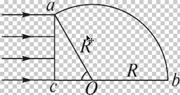 12.如图所示是一块用折射率n=2的玻璃制成的透明体的横截面,ab是半径为R的圆弧,ac边与bc边垂直,∠aOc=60°.当一束平行黄色光垂直照到ac上时,ab部分的外表面只有一部分是黄亮的,其余是暗的.那么黄亮部分的弧长为.