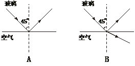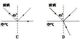 5.如图所示,一束光线从折射率为1.5的玻璃内射向空气,在界面上的入射角为45°,下面四个光路图中,正确的是 ( )